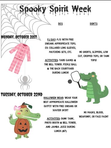 Gators, please refer to the attached flyer for Xavier's Spirit Week Events!